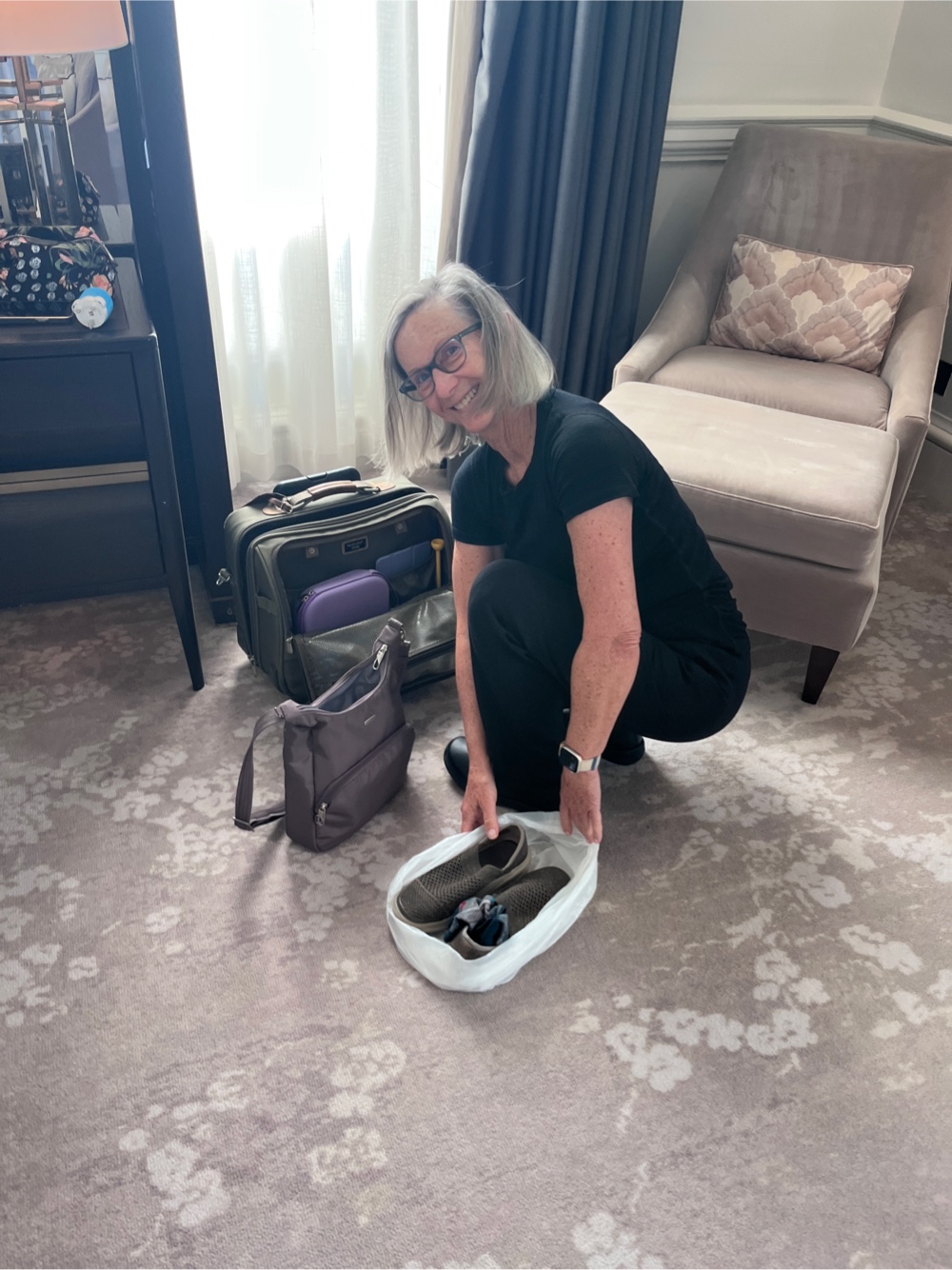 And there is an infant in the first class cabin, maybe six months old. I get it. I’m a grandma now and have flown with Adam. I would NEVER be making the noise and fuss this woman is making playing with her grandson. At least I assume it’s mom, baby and grandma.