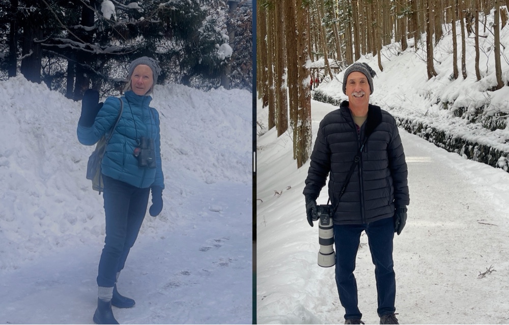 Mike always wanted to see a smew. It’s an uncommon mostly white duck that is almost never in the US and prefers colder climates. Using eBird and Birdseye, he found a few places near the snow monkeys that have them. He talked the driver into stopping a Suka Regulating Pond, a small artificial pond used for flood control where they have been reported recently. As we pulled in, most of the pond was frozen, but there were 50 ducks in one small corner. The white duck was easy to spot amongs the more drab ducks.