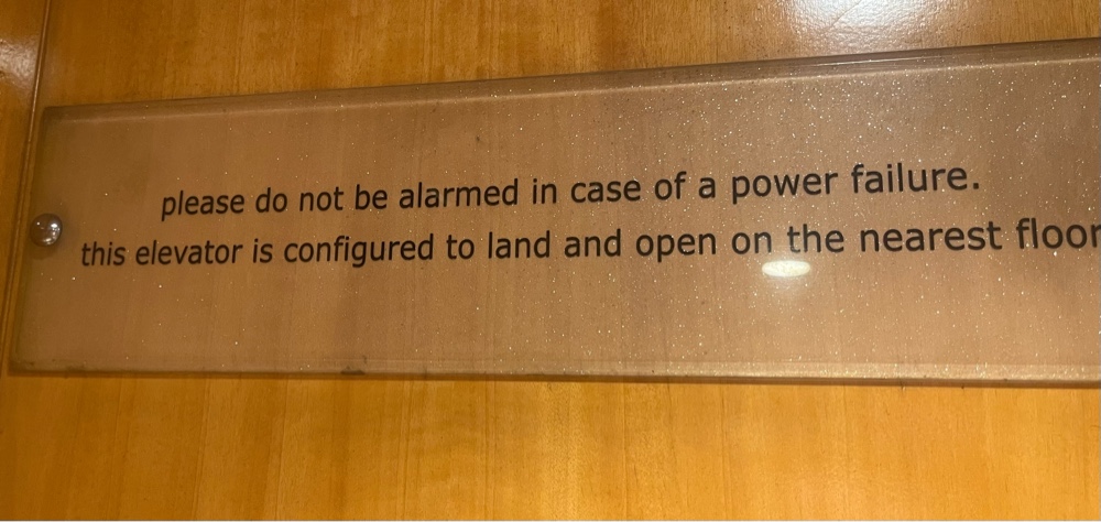 We liked the sign in the elevator- at every place we have stayed, the power has gone off briefly at least once. I think it even happened at the Oberoi.