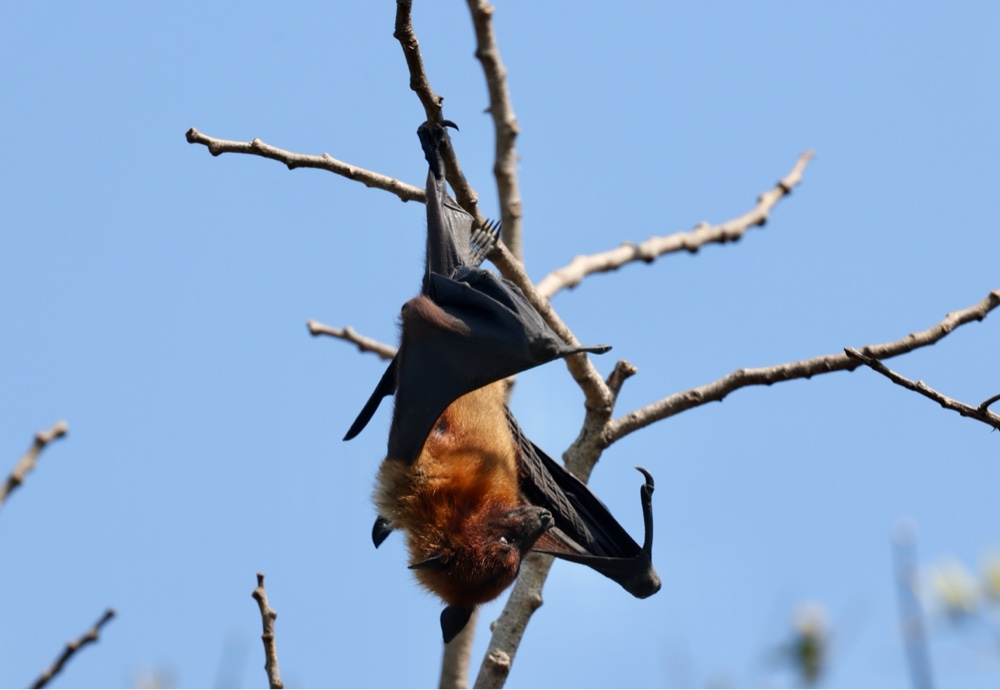 The real birding was at Keoladeo National Park. We were driven around this large park in a tuk tuk, but also got plenty of walking in. There were also spotted deer, a jackal, and plenty of fruit bats.