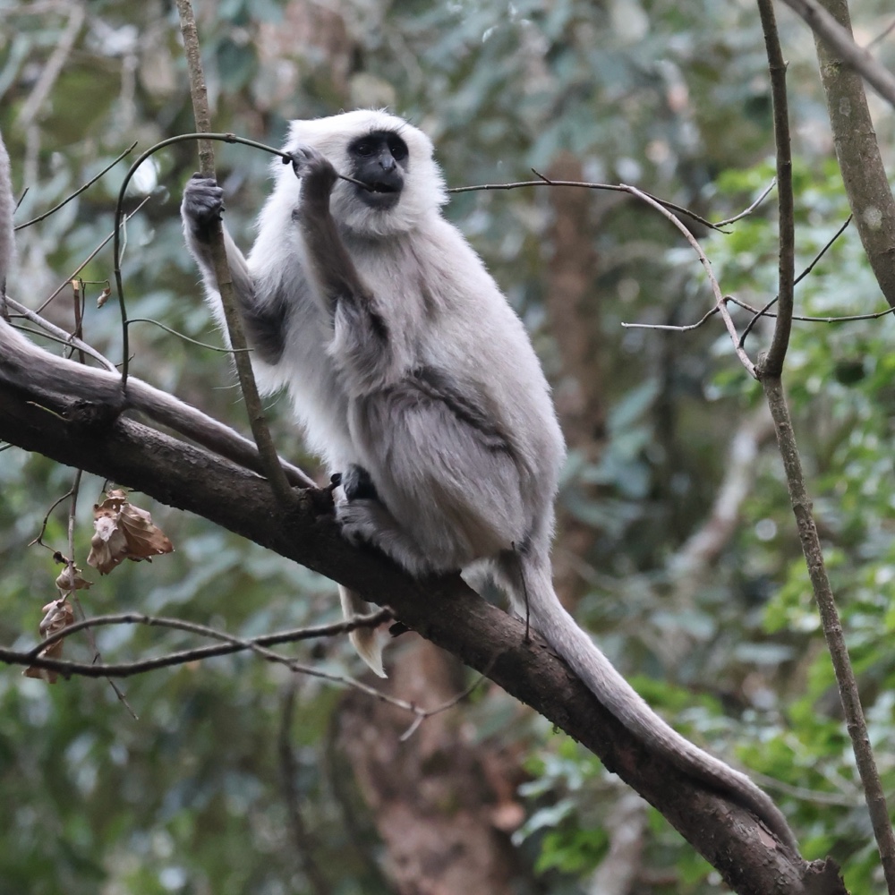 White-crested LaughingthrushStriated LaughingthrushRusty-cheeked Scimitar-BabblerLesser Yellownape Red-billed Leiothrix Great BarbetVelvety NuthatchRed-billed Blue MagpieHimalayan BulbulKalij Pheasant (male)Himalayan Langur (Hanuman Langur)