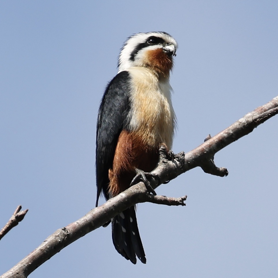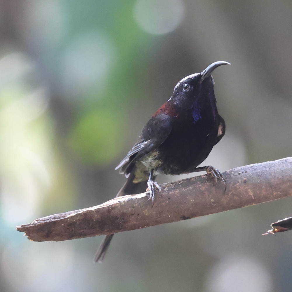 We first went to the hide but as we climbed down the hill, our guide noticed a Rufus-necked Hornbill so we went back up and got some photos of that and found an owlet as well. After staying at the hide for a few hours we went to the bottle brush. After some time and after we stayed back while the guides went to lunch, we were able to get good looks and photograph the sunbird. The crested falconet was also near the bottle brush.