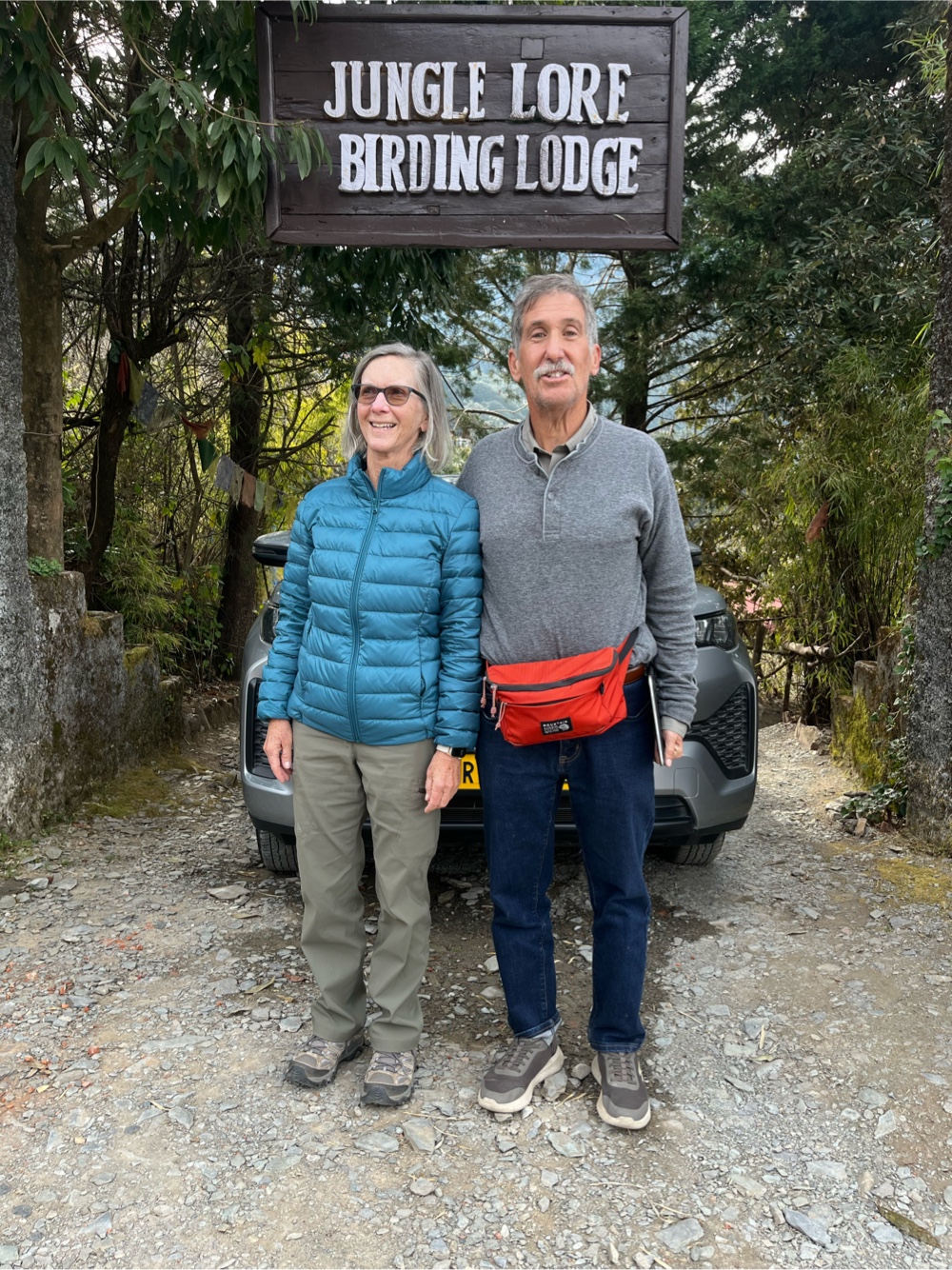 Well the contrasts continue. After the luxury of the Oberoi we were really roughing it at Jungle Lore. After taking Dramamine for the ride up, eating a large lunch of unfamiliar foods and sleeping in a heated bed in a room with no heat, I was unable to make the morning 5 am trek to the hide where Mike saw many birds. I went back to bed and stayed close to the bathroom. I watched birds from the porch later in the day staying warm in the sun. Although the actual accommodations were less than ideal in my opinion, the hosts were the most delightful so far and always looking after us. And Bob the dog was in charge of keeping monkeys away.