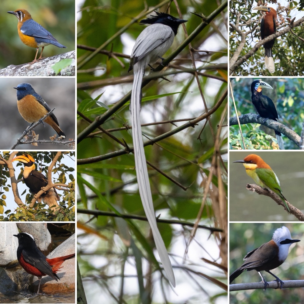 Best Birds: Rufous-necked Hornbill, Mrs Gould's Sunbird, Red-headed Trogon, Blue-fronted redstart, Long-tailed Minivet,Whiskered Yuhina -
