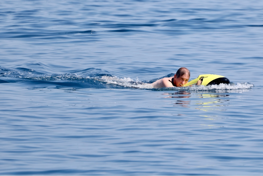 First, you should have your bathing suit tied tight. As soon as he picked up speed, he stopped to correct this. Second, the instructor thought you could watch fish from it and use a mask, but that actually distracted from the fun of just being pulled through the water.